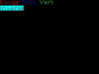 setTextColor(RGBcolor(0,MAX_GREEN,0)); text("Vert\n"); // ou avec la fonction RGBcolor
